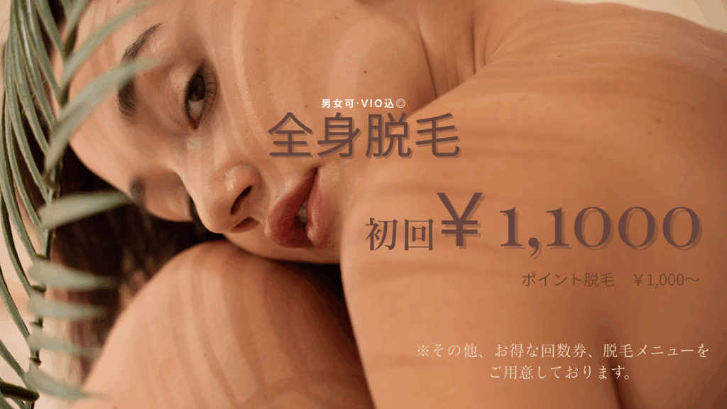 【お顔、VIO込】SHR脱毛で痛みの少ない脱毛を手の指から足の指までしっかり全身脱毛。
