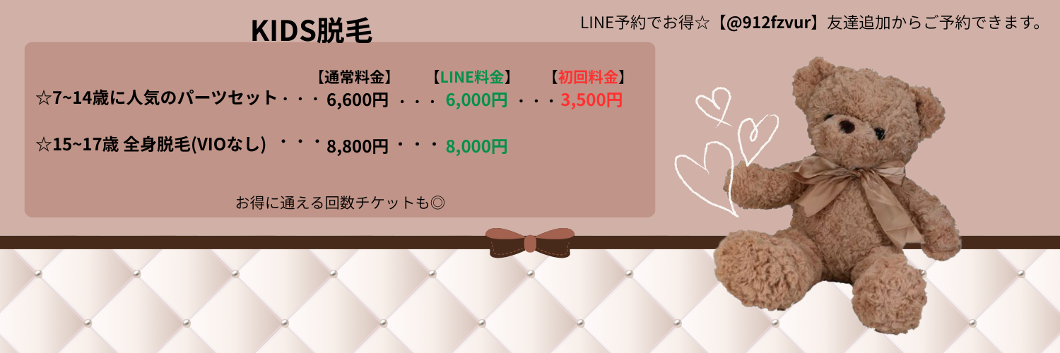 うで・あし・わき・口周り・眉間の脱毛(背中もご希望があれば追加料金なしで施術可能です。)